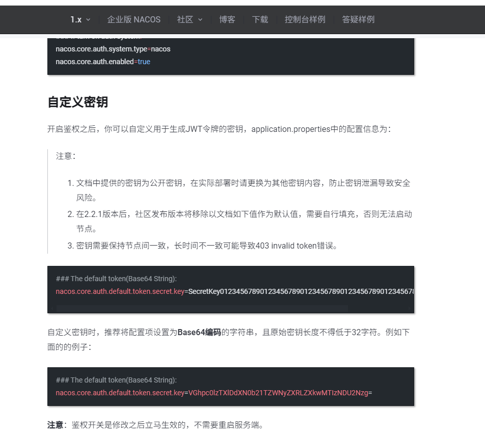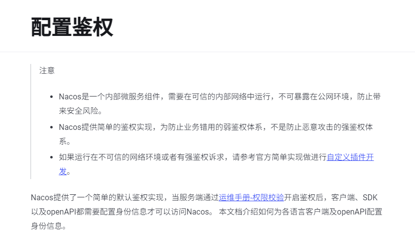 其实关于Nacos安全问题的根本原因,正如官方的开发文档所说,Nacos提供简单的鉴权实现,即只提供防止业务错用的弱鉴权体系,而不是防止恶意攻击的强鉴权体系,正是导致这些安全问题的根本原因,不知道Nacos是否考虑后续改进一下,因为HW期间因此产生的安全问题已经比较影响正常业务了