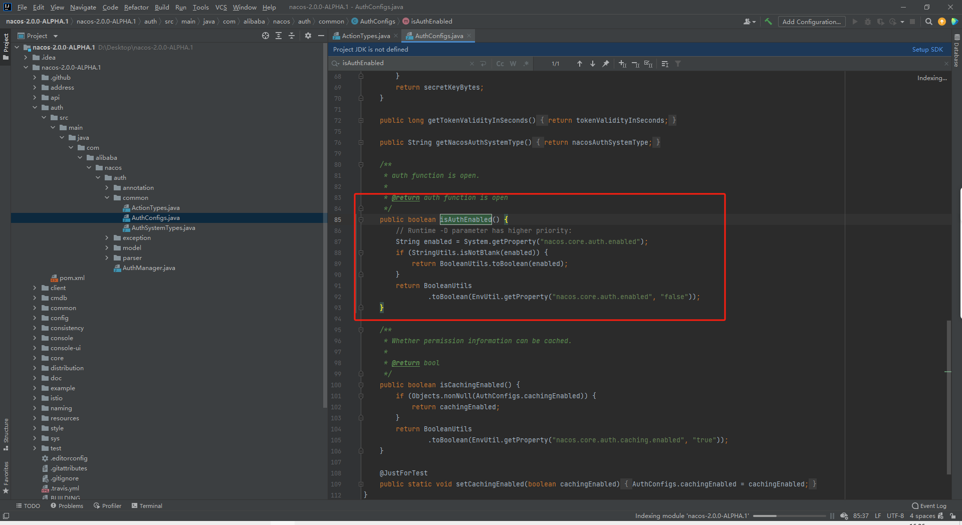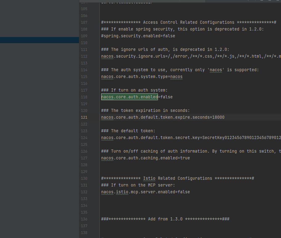 在auth/src/main/java/com/alibaba/nacos/auth/common/AuthConfigs.java类中,isAuthEnabled方法的返回值取决于nacos.core.auth.enabled (默认False)