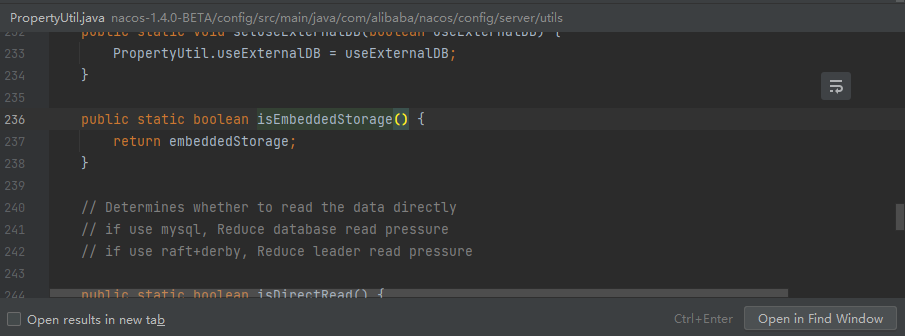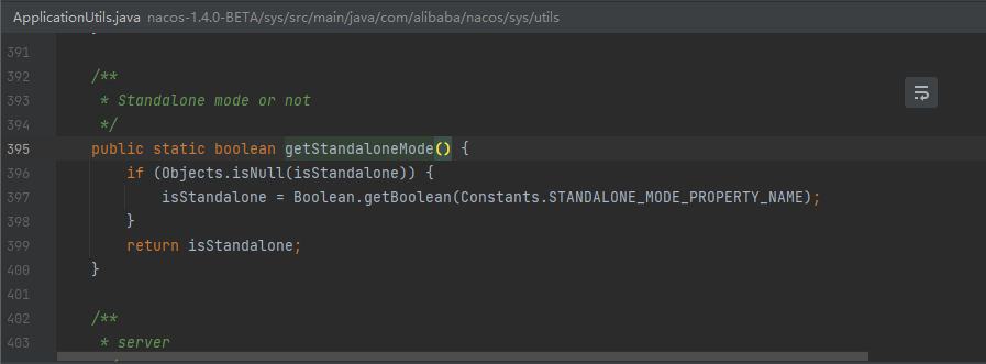 跟进一下看一眼,第一个if的值取决于是否standalone模式启动的nacos,所以在standalone模式启动nacos的话,默认就可以进入第一个if